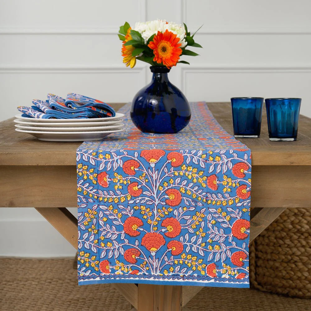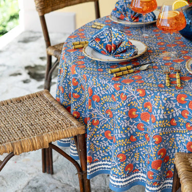 Set the stage for memorable meals with Pomegranate Home’s Cactus Flower Blue & Poppy table linens. Crafted from premium cotton and featuring a whimsical print with a tranquil blue background and lively poppy orange flowers, this tablecloth instantly enlivens any dining space. Whether for everyday use or special occasions, its vibrant design and superior quality make it a delightful addition to your table decor.