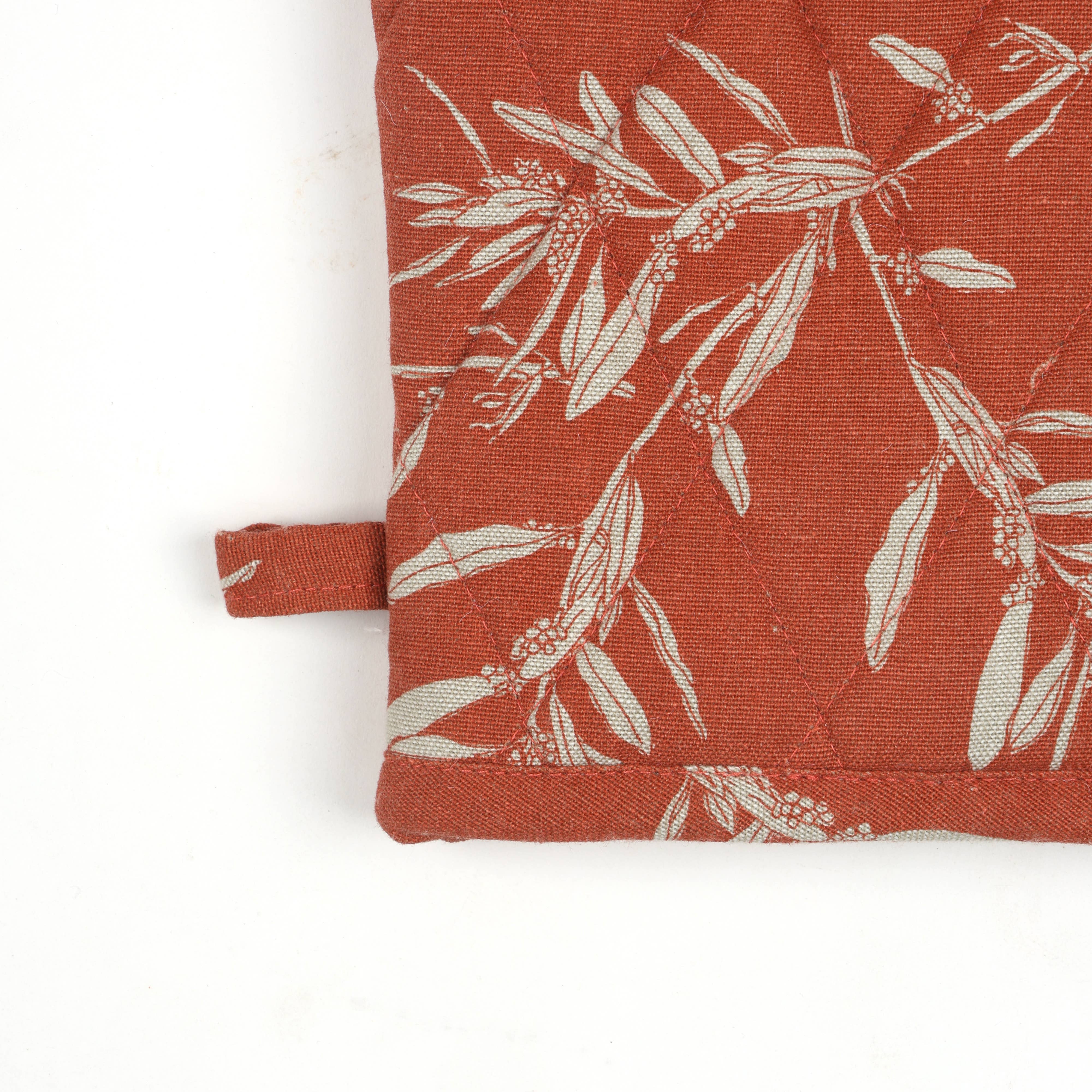 Crafted with 100% recycled cotton, these oven mitts boast a beautiful Olives and Branches pattern that will add a touch of charm to your kitchen. The quilted design provides superior heat protection. The delightful Olives pattern adds a pop of personality to your kitchen decor.