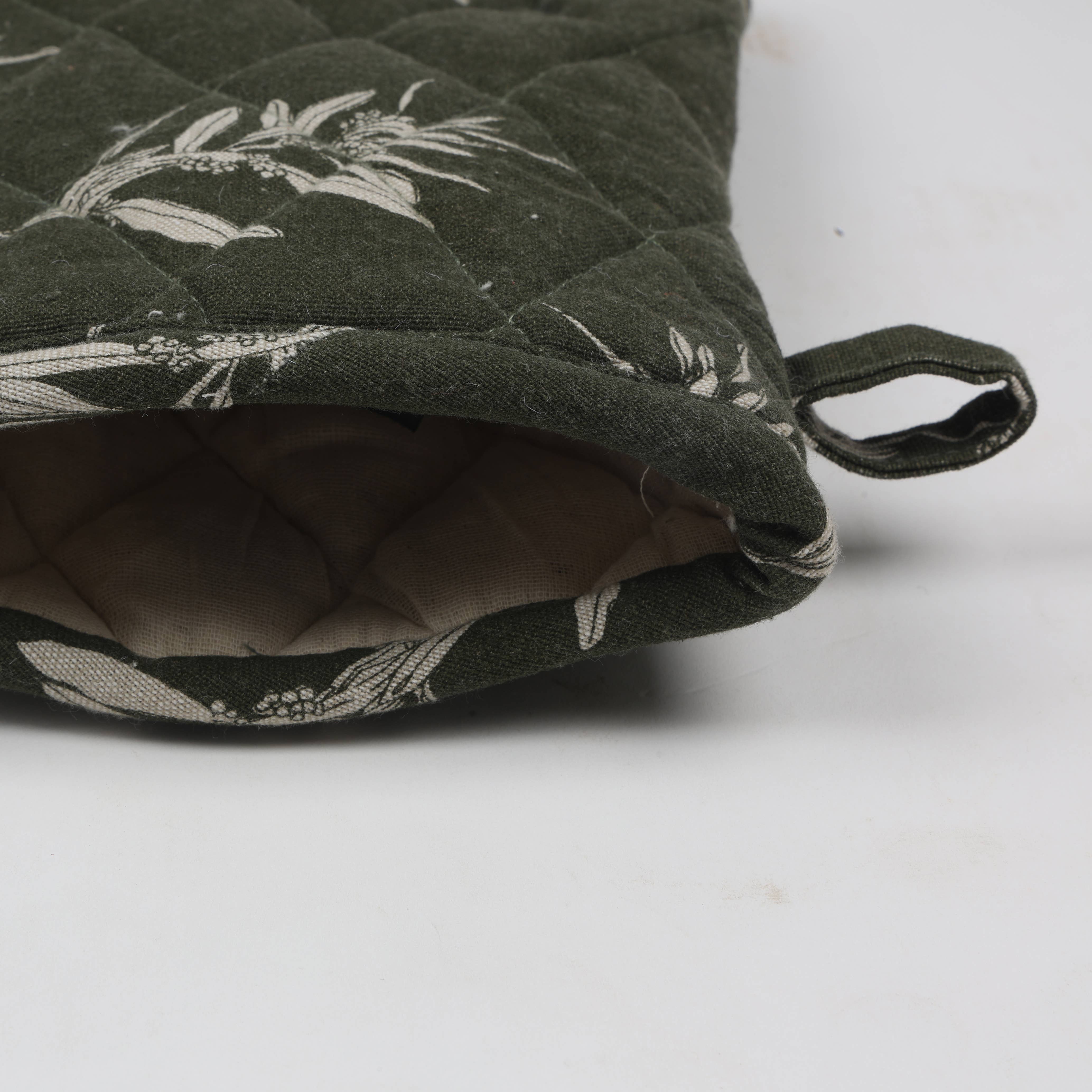 Crafted with 100% recycled cotton, these oven mitts boast a beautiful Olives and Branches pattern that will add a touch of charm to your kitchen. The quilted design provides superior heat protection. The delightful Olives pattern adds a pop of personality to your kitchen decor.