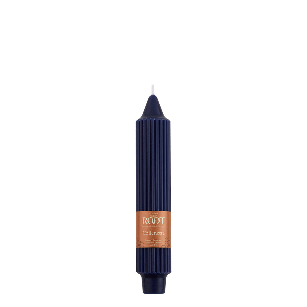 Our 7" Grecian Collenette Dinner Candle has a wide 1.25" diameter with a 7/8" tapered base to fit into any fine dinner candle holder. Root Candles' Grecian Collenettes burn an impressive 2-1/2 hours per inch. Candles are sold individually.