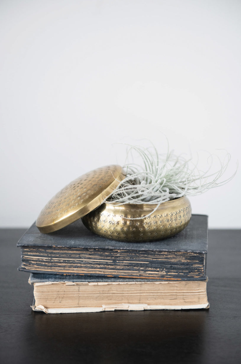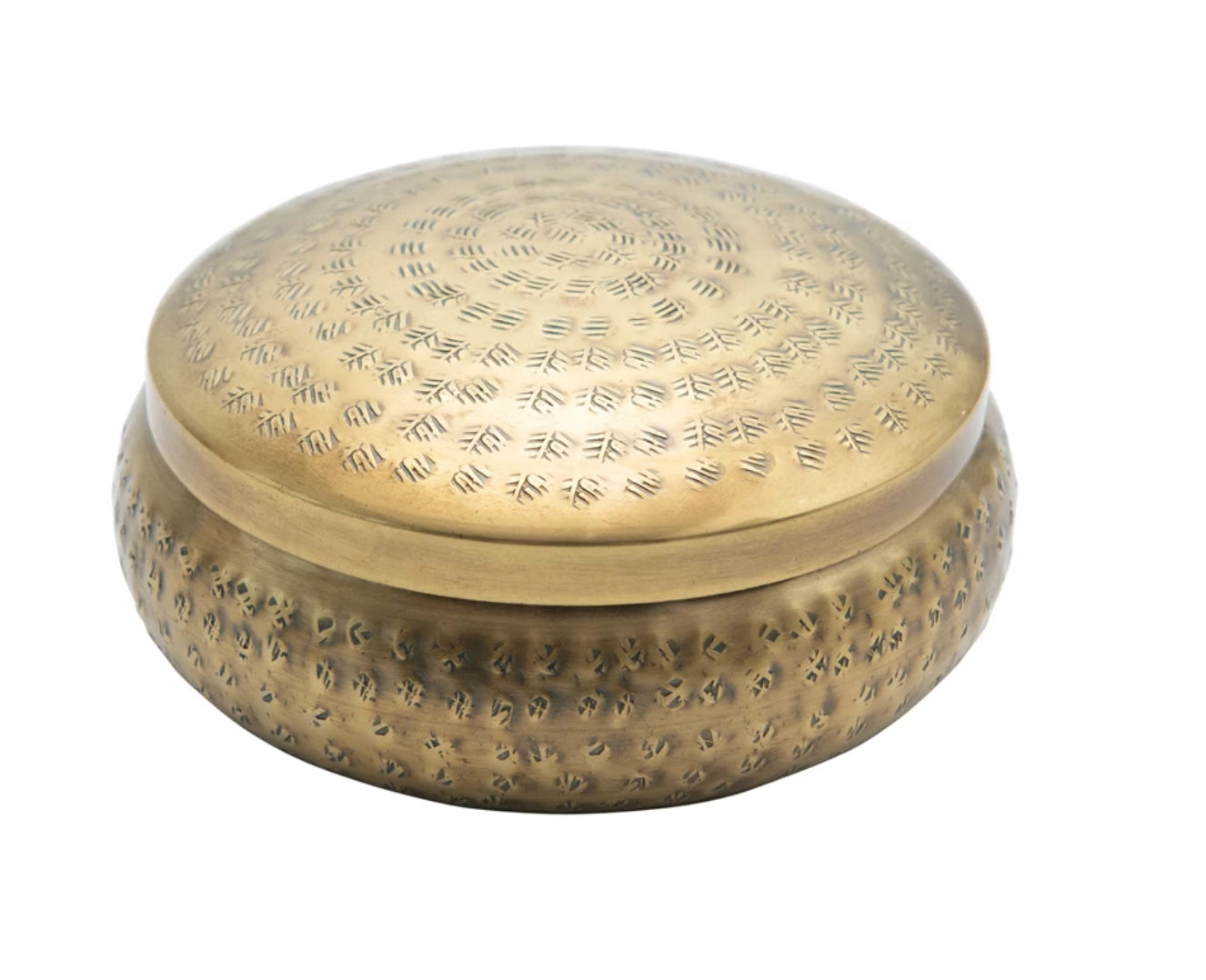 5" Round x 2"H Hammered Metal Container, Brass Finish