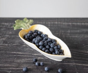 11"L x 4-1/2"W x 2-1/2"H Hand-Painted Stoneware Carrot Dish, Orange Color & Green