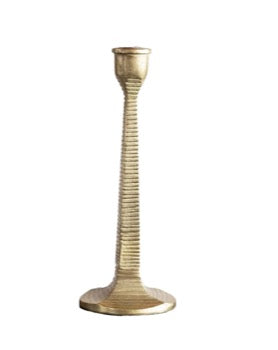 Metal Taper Holder with Ridged Pattern, Gold Finish