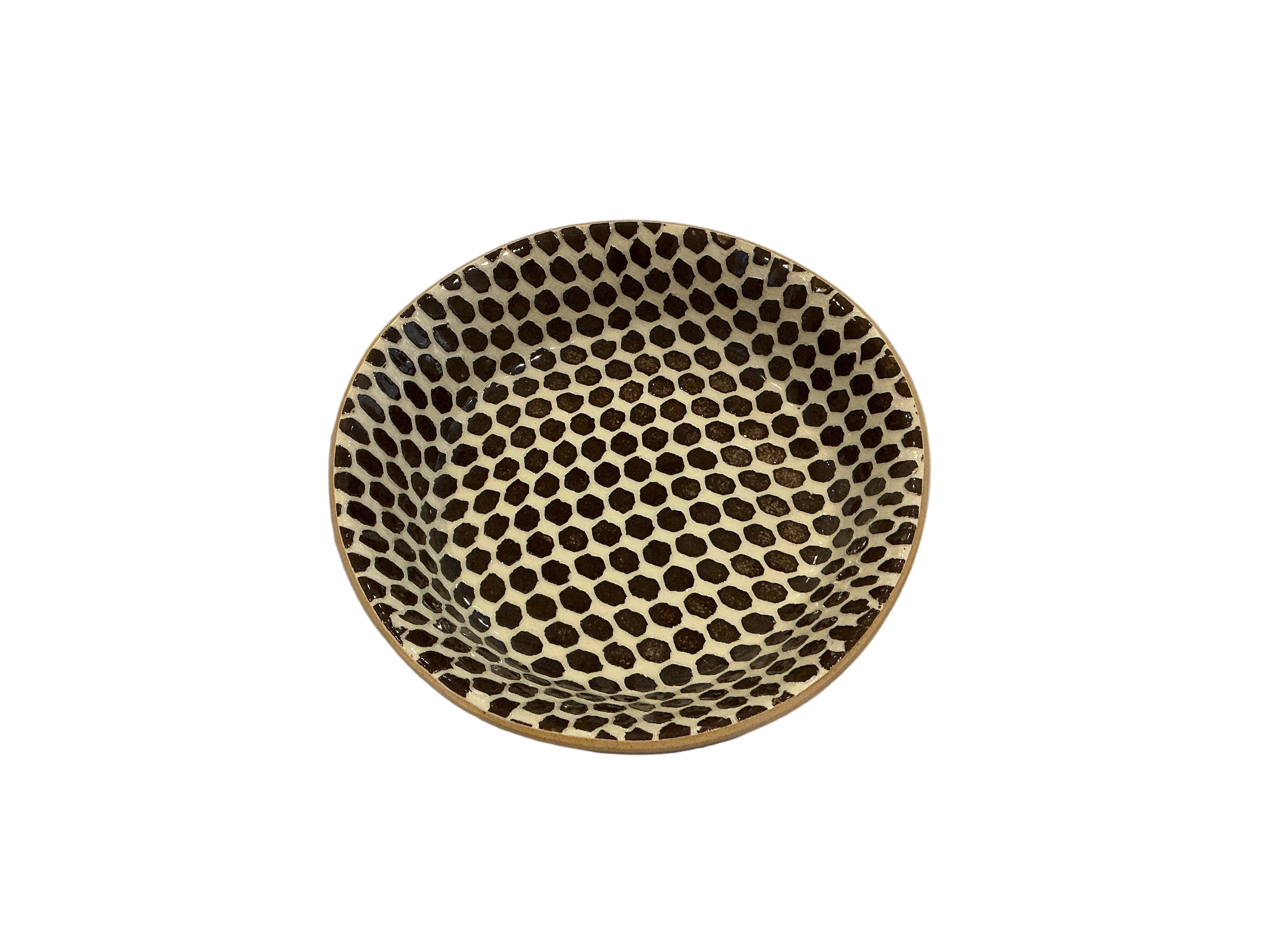 Handcrafted by TerraFirma in Brooklyn, this Pasta Bowl showcases artisanal pottery techniques with its distinctive dot pattern. The warm chestnut color brings earthy sophistication to any space, whether displayed on a shelf or used functionally for organizing essentials. Each piece reflects the maker's attention to detail and commitment to quality ceramics. Perfect for collectors who appreciate authentic, locally-made home goods.