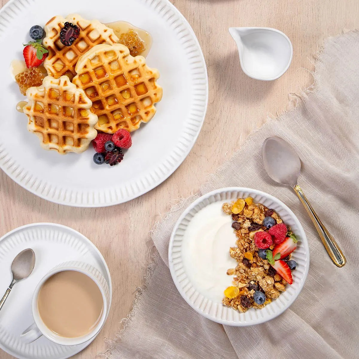 Porto Brasil introduces the Linhas White Collection, a timeless ceramic set with a unique design on the edges. Ideal for everyday use, it effortlessly complements any pre-existing home decor. Through the use of advanced technology and a commitment to excellence, Porto Brasil guarantees superior quality, durability, and strength. The set boasts enhanced scratch, stain, and chip resistance, as well as minimal water absorption, reducing the risk of cracks.