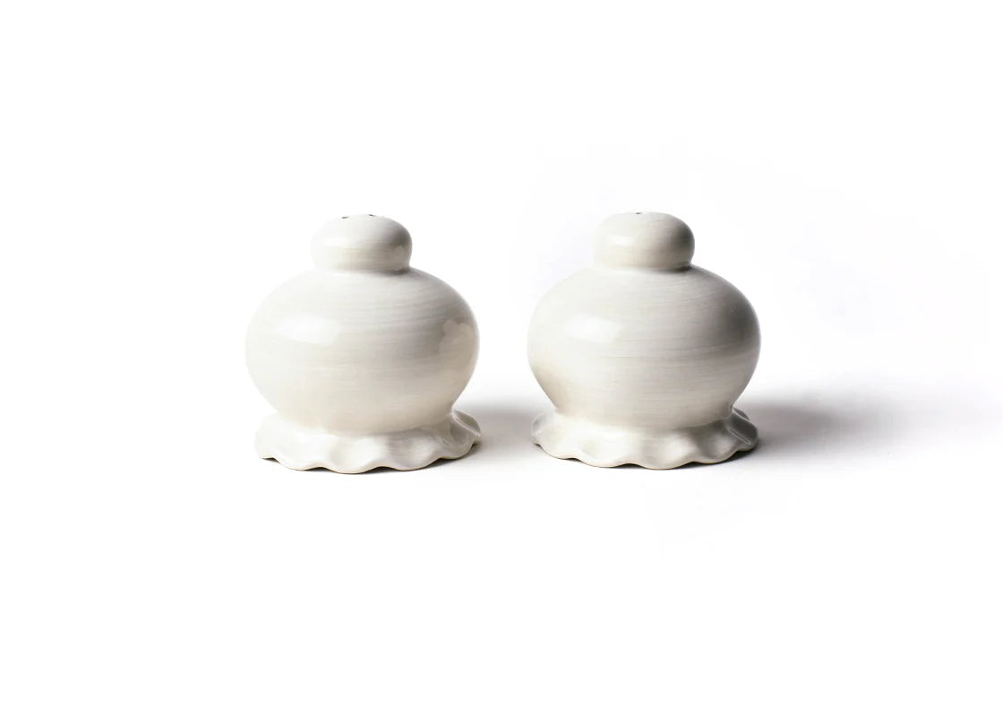 Accessorize your tablescape with the addition of the Signature White Ruffle Salt and Pepper Shaker Set. This charming set perfectly complements the rest of the Signature White line, creating a cohesive and stylish table setting.