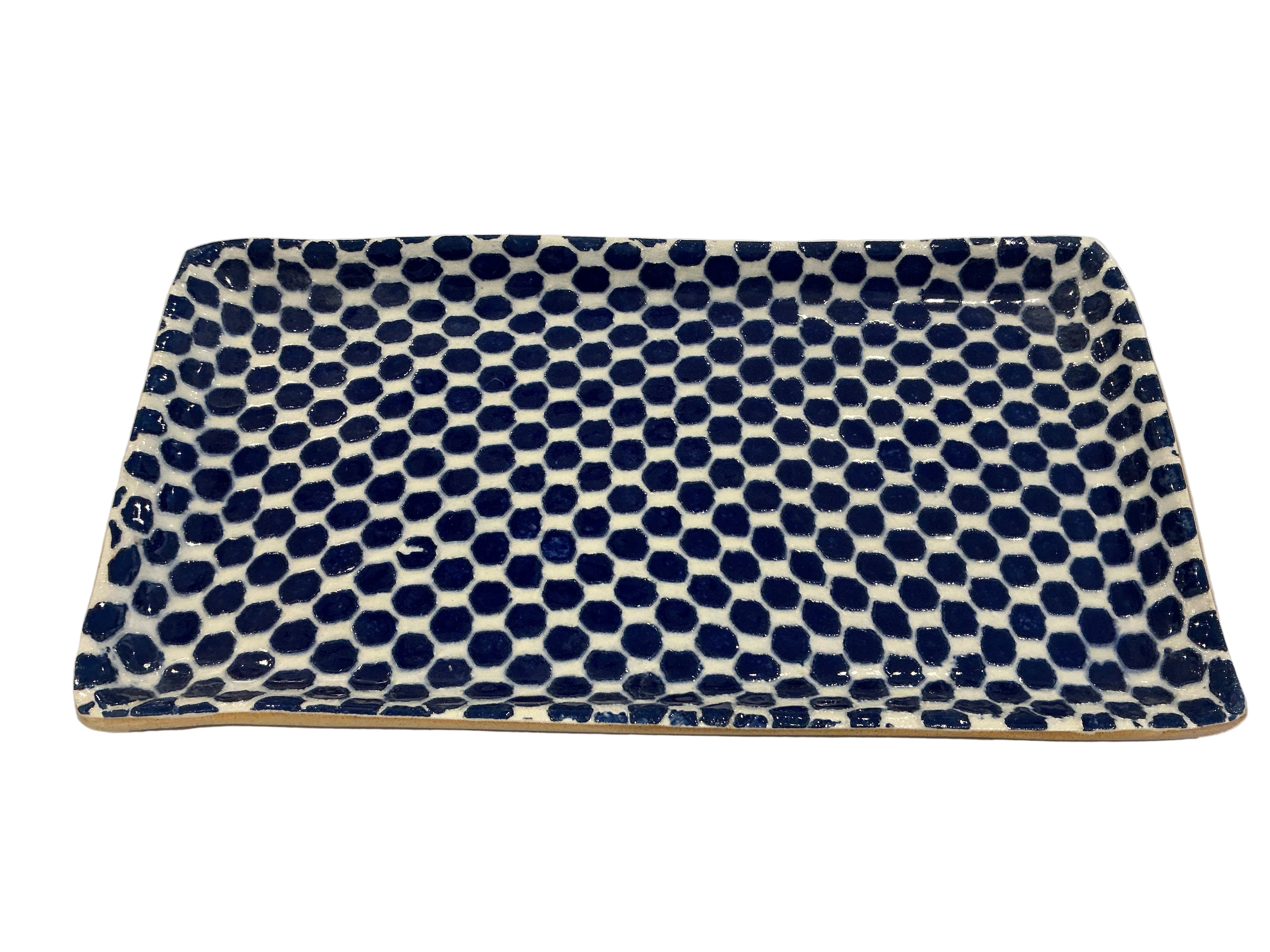 Handcrafted by TerraFirma in Brooklyn, this small rectangular stacking tray showcases artisanal pottery techniques with its distinctive dot pattern. The cool cobalt color brings earthy sophistication to any space, whether displayed on a shelf or used functionally for organizing essentials. Each piece reflects the maker's attention to detail and commitment to quality ceramics. Perfect for collectors who appreciate authentic, locally-made home goods.