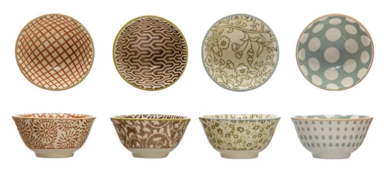 This 2-1/2" Round Stoneware Pinch Pot is available in 4 stylish, multi-colored patterns. It is the ideal addition to any charcuterie board, perfect for holding small amounts of honey, jam, or as a mini salt bowl on the table.