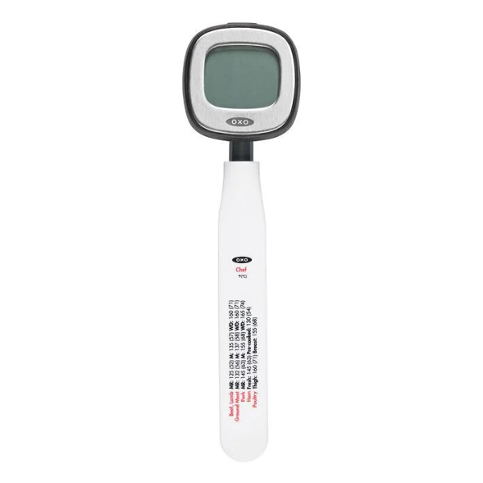 The probe cover has chef- and USDA-recommended temperatures for convenience. Temperature range 30 to 150°C (-22 to 302°F).