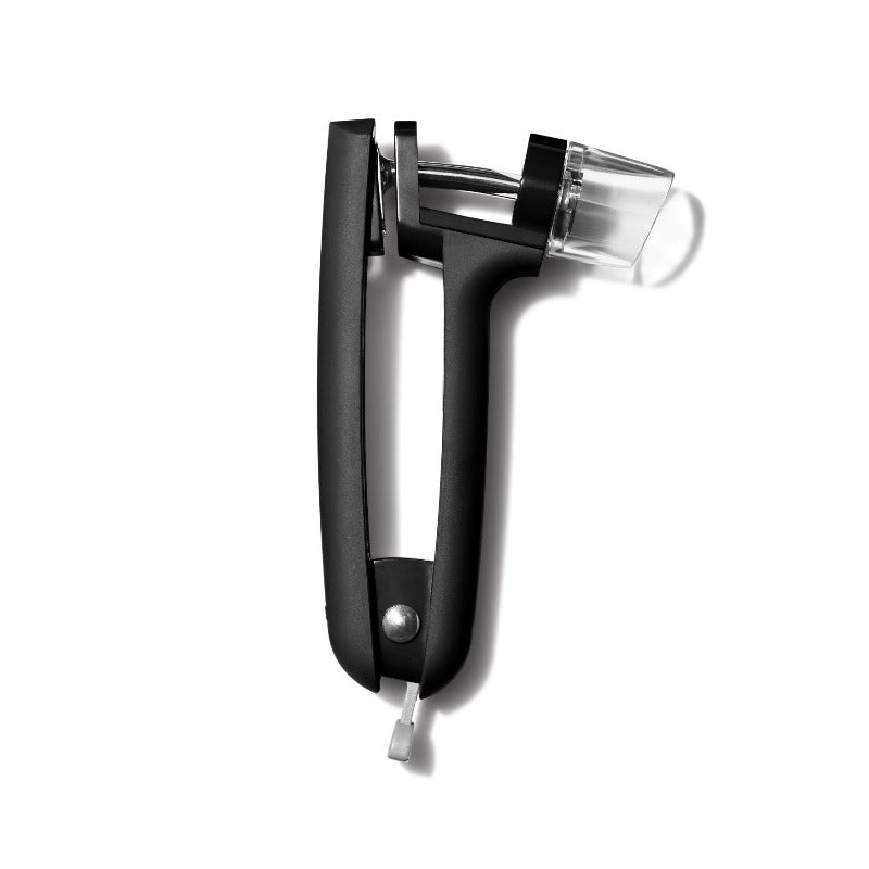 The sturdy, die-cast zinc Pitter has a generous holder that accommodates large cherries like Bing and Rainier as well as a recessed design that secures smaller varieties of cherries and olives. The Pitter locks closed for safe and compact storage.