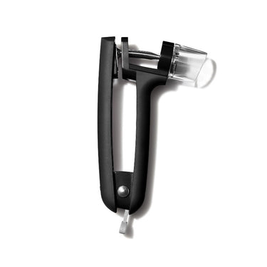The OXO Good Grips Cherry & Olive Pitter has a pressure-absorbing, non-slip grip that makes pitting even a pie’s worth of fruit effortless. A splatter shield protects your work area and clothing from messy juices and removes for easy cleaning.