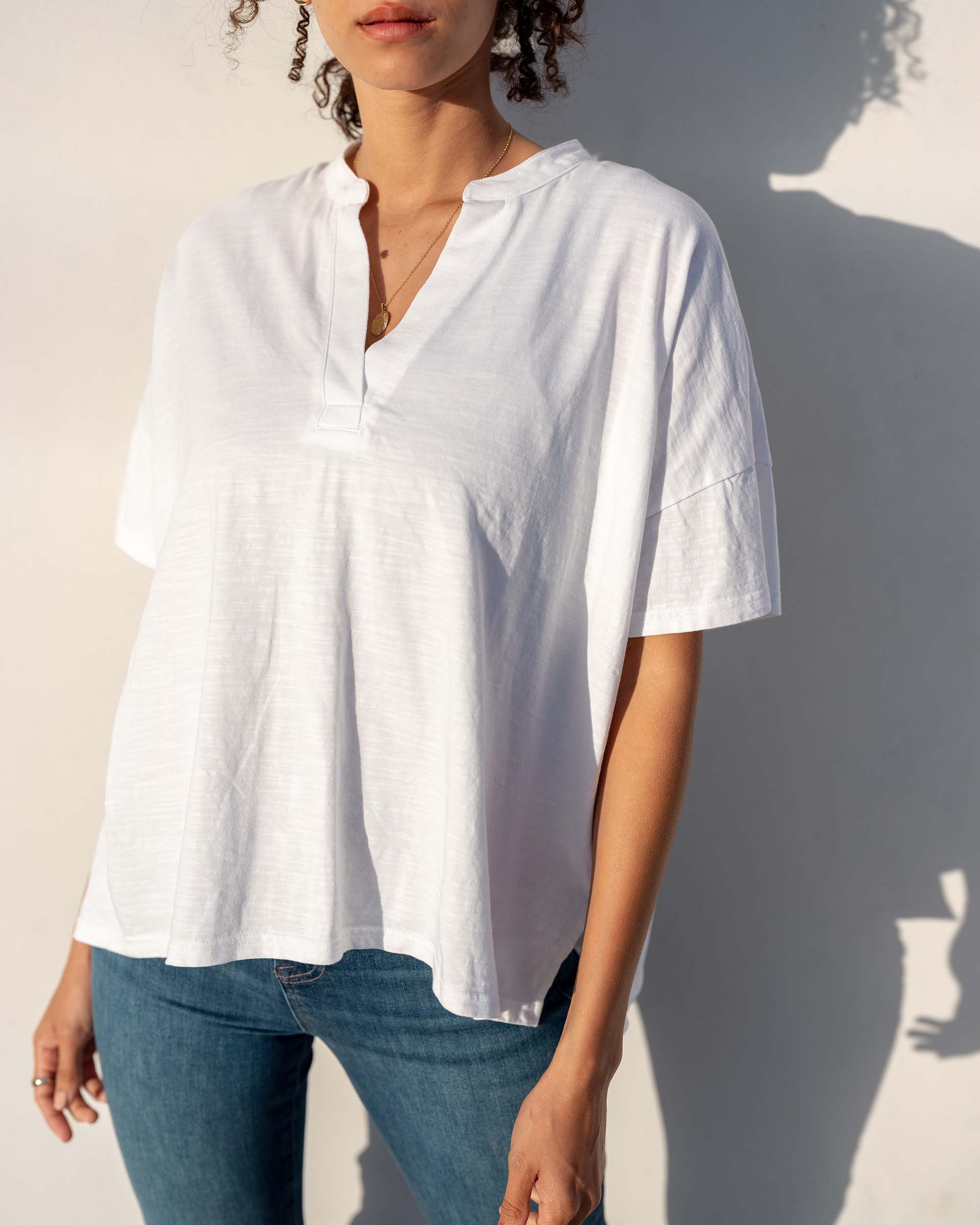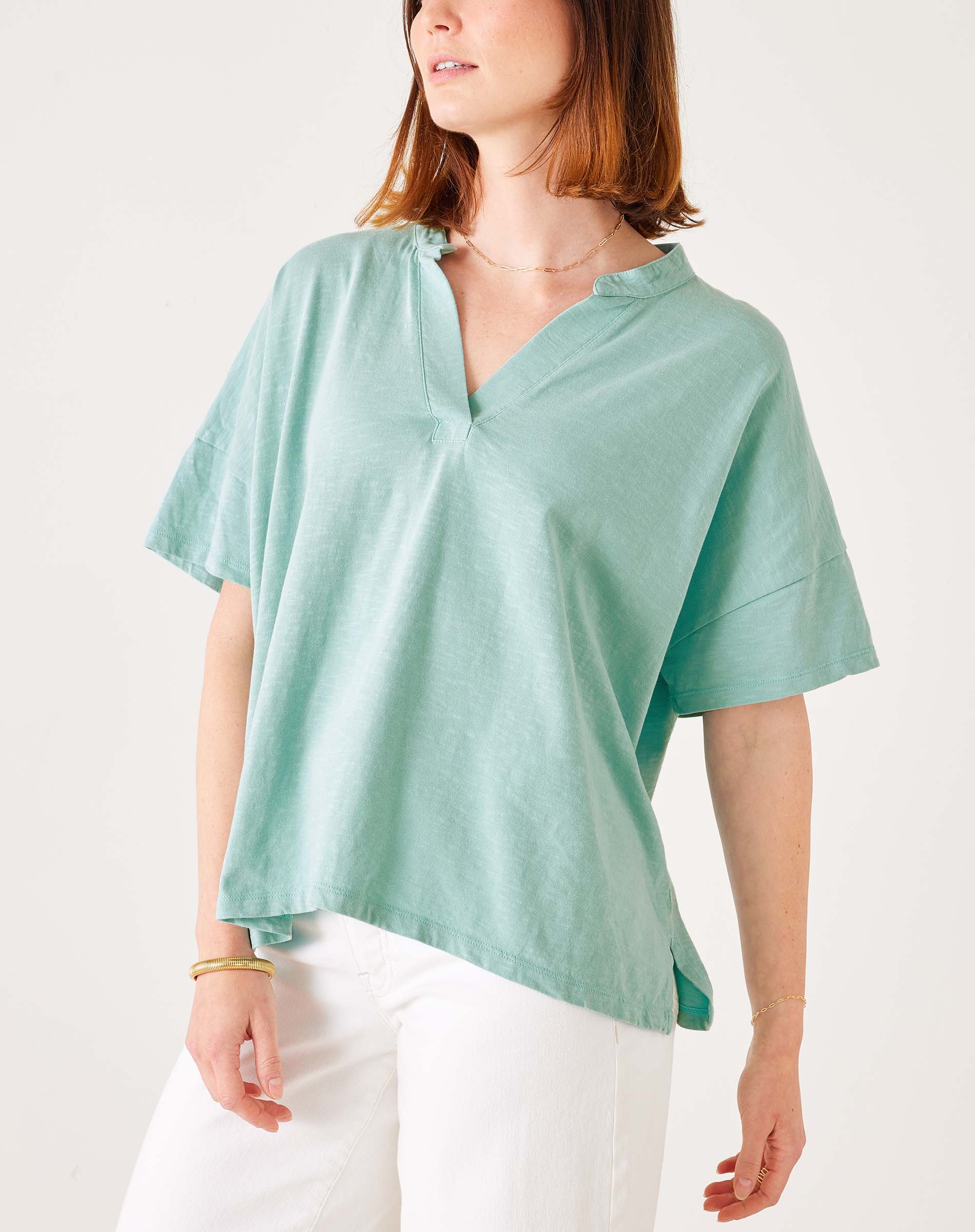 Chic like a blouse, our Amelia Short Sleeve Tee is simply irresistible. Underscore and italicize simply, because in most cases the best things in life really aren’t overly complicated—this pure cotton tee just looks and feels simply amazing. Amelia is destined to be your new best friend for dress-up dinners, lunch at the office, and Sunday lounging - she is just that kind of friend.