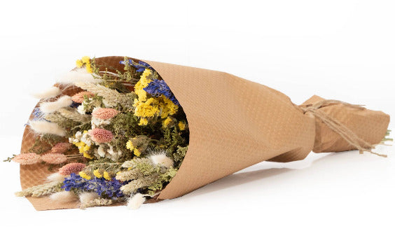 Our floral team designed this beautiful bouquet using an assortment of natural grains, dried floral stems, and bunny tails to create this colorful and joyous bouquet arrangement. Each bouquet is designed and handcrafted in our California design studio.