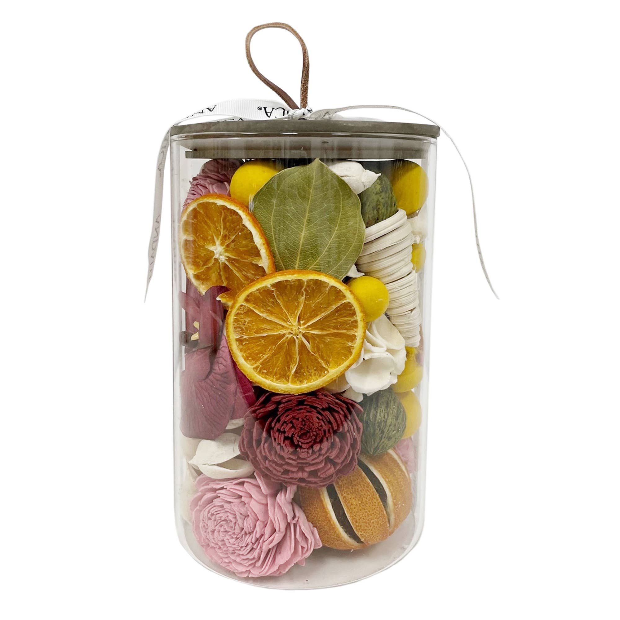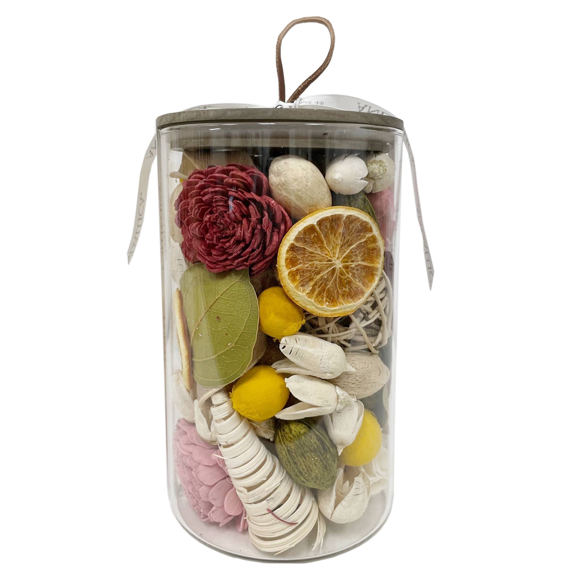 - 12 ounce potpourri in decorative jar with wood lid, comes pre-scented.