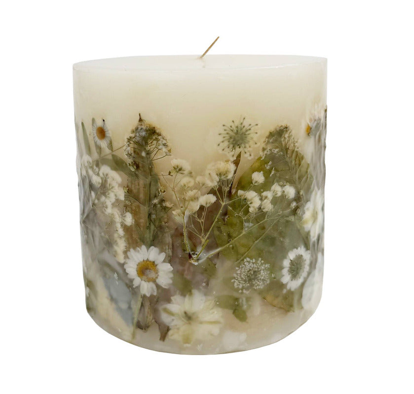 Paperwhite & Fauna Pressed Flower Pillar Candle