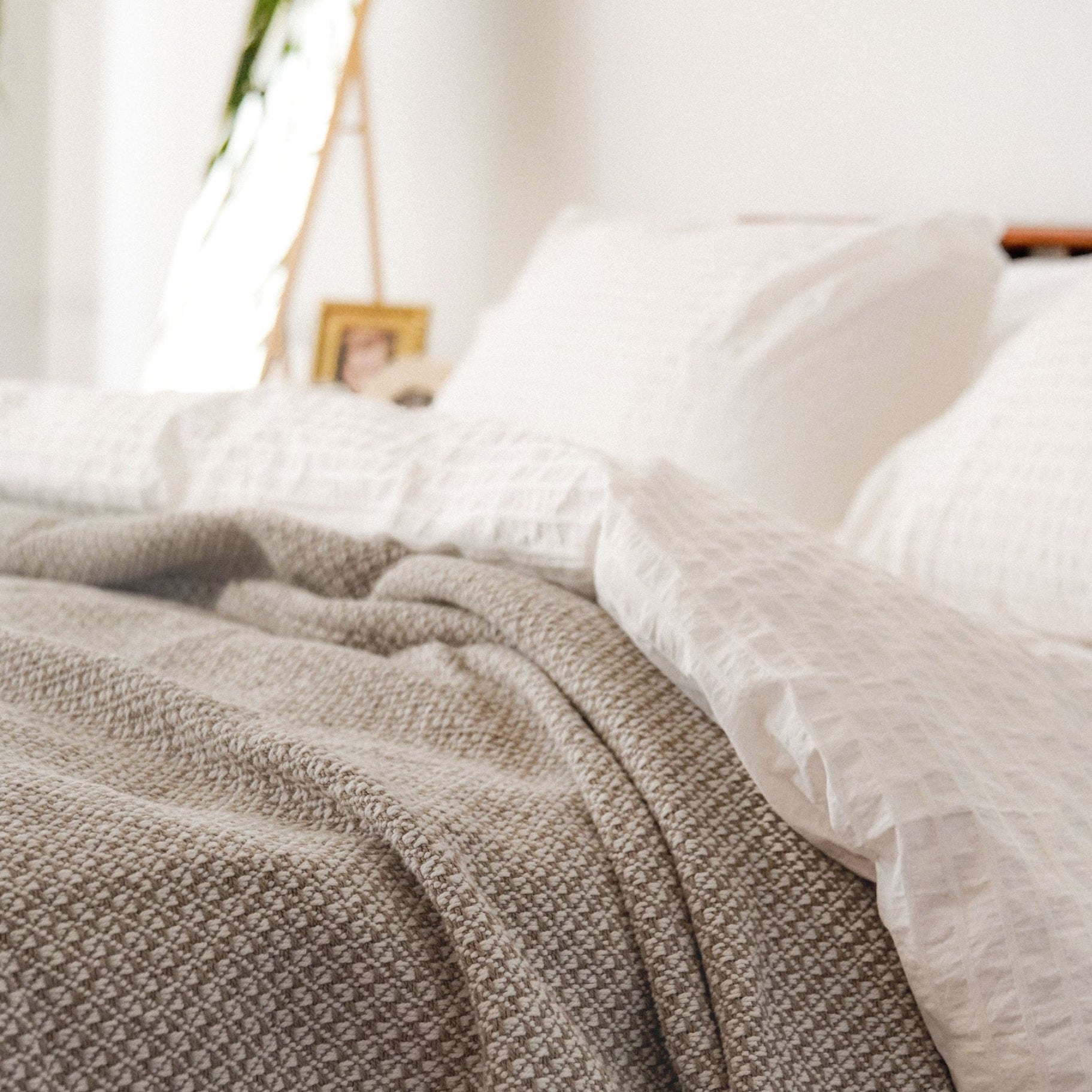 Drift off to dreams inspired by the serenity of the Maine coast with our exquisite Bar Harbor Cotton Blanket. Woven at our mill in Maine using 100% Cotton this blanket covers you in luxurious softness and natural breathability. Featuring a timeless diamond weave design it will elevate any bedroom décor. It's also machine washable for effortless upkeep, simply toss it in the washing machine and cherish its enduring softness for years to come.