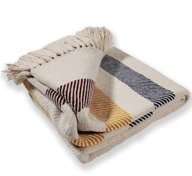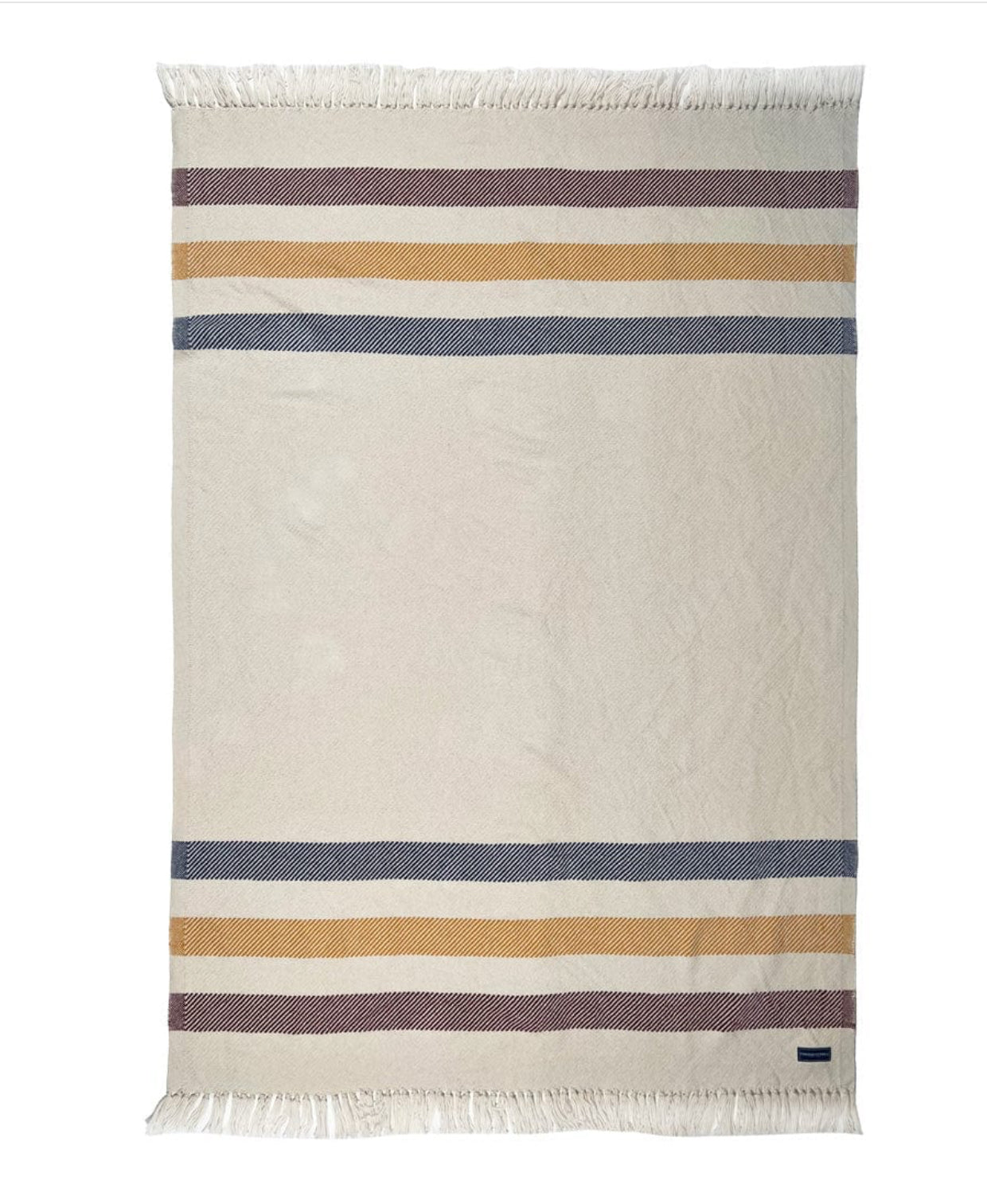Taking inspiration from our iconic wool version, this throw comes in bold stripes of red, navy, and yellow, adding a vibrant burst of color and classic style to any space.