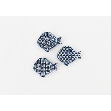 Transform your table into a charming seaside setting with these navy and white stoneware plates. Adorned with fish bone scales, they measure 3.5" x 4.5" and add a whimsical touch to any meal.