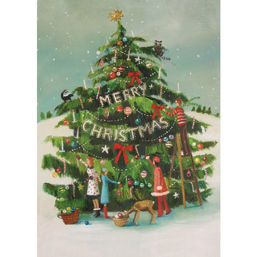 Wish your family and friends Merry Christmas with this 5" x 7" greeting card by artist Janet Hill. Experience the whimsical worlds of Janet Hill's art in our collection of greeting cards for many occasions. Designed and printed in the USA on FSC certified, recycled content. Custom printed envelope included. Blank inside. Includes gold foil accents.