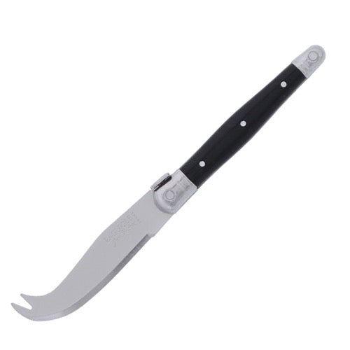 Jean Dubost Laguiole Mini Ivory and Stainless Steel Cheese Knife at Welcome Home AnnapolisCheese knives are crafted from durable stainless steel and feature ABS handles, sharpened blades, and stainless steel caps. Each product is subjected to 25 steps of production before its finally stamped, polished, and packaged.
