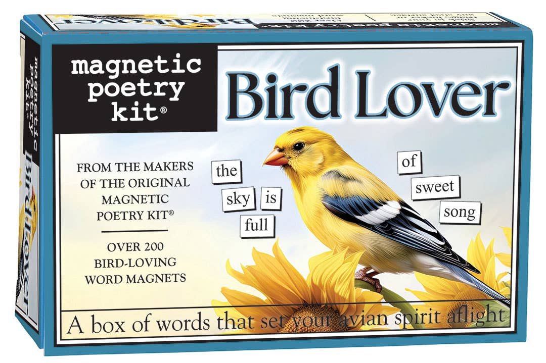 Whether you occasionally watch birds in the backyard or are a devoted birding enthusiast, the Magnetic Poetry Bird Lover Kit is for you. This kit contains the perfection collection of words to give voice to your avian spirit.