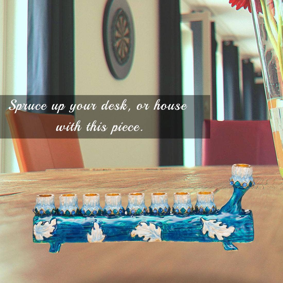 Crafted in a log design, this Menorah will look just as good on Hanukkah as it will in the living room! A menorah is a nine branched candelabra, traditionally used to celebrate the Jewish holiday of Hanukkah. Every night of the 8-day holiday, another candle is lit with the ‘Shammash' (helper light) the extended branch and extra light. The perfect gift for a spiritual someone in your life as a decoration or religious symbol!