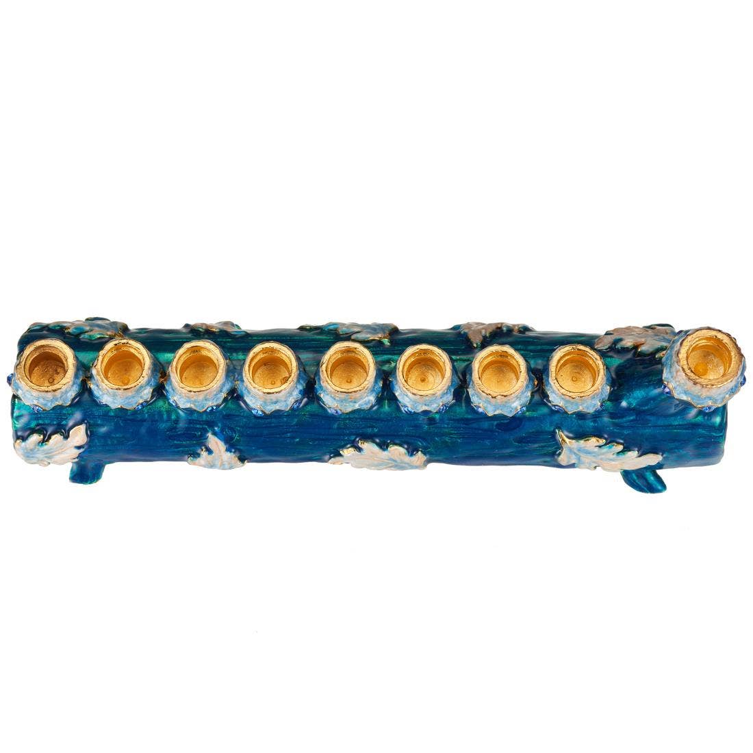 Matashi - Menorah Matashi Hand Painted Blue and Ivory Log Candelabra