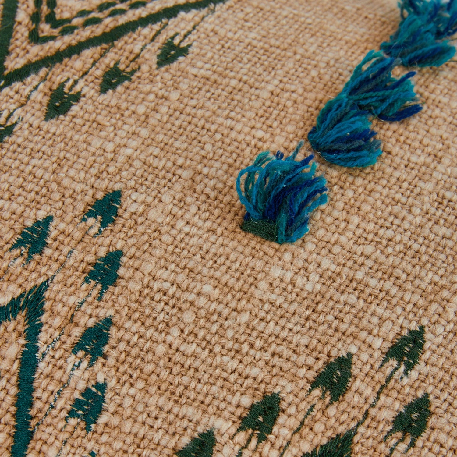 Natural & Teal Embroiderd Lumbar Pillow