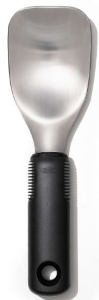 Dish out ice cream for a crowd with the OXO Good Grips Ice Cream Spade. It has a wide, stainless steel head that’s perfect for scooping large servings of ice cream and durable enough for packing pints. The soft, non-slip handle stays comfortable—and won’t get cold during use. Dishwasher safe.