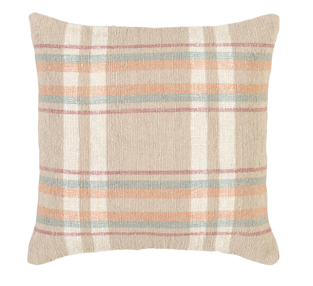 Timeless and cozy, the Parker Decorative Pillow features a classic plaid pattern woven from a durable linen-cotton blend. Its earthy tones and soft texture bring rustic charm and laid-back comfort to any sofa, bench, or bed. Perfect for layering in farmhouse-inspired spaces.