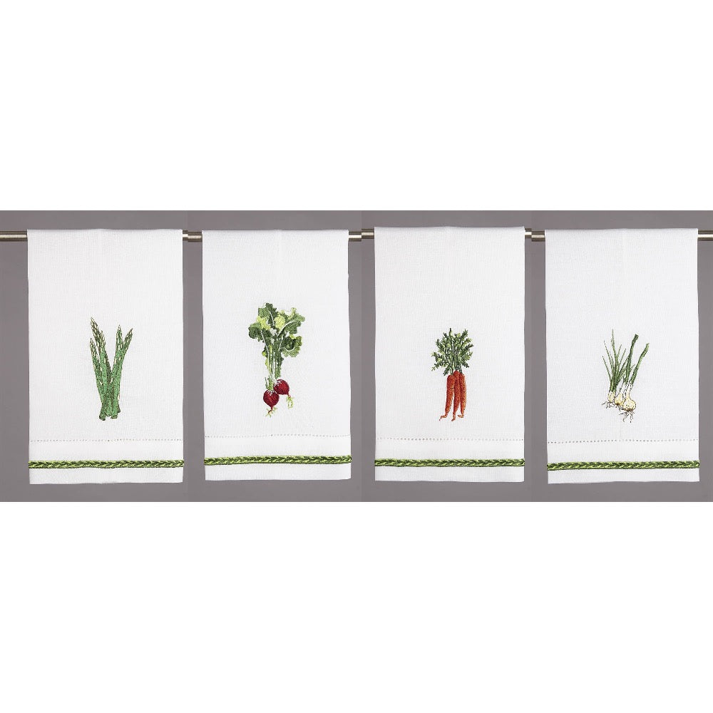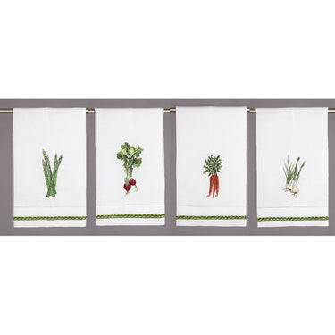 Cotton-blend embroidered guest towel featuring vegetables. Machine washable. 14x22”