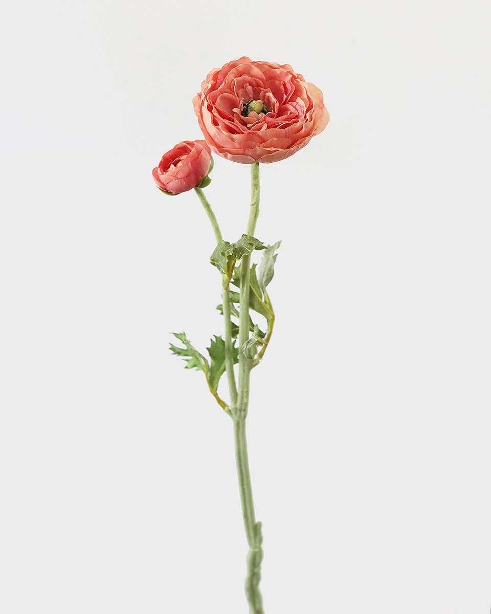 This salmon pink faux ranunculus captures the enchanting beauty of real ranunculus blooms. Each faux flower showcases a striking salmon pink hue, radiating charm and elegance. Our artificial ranunculus mirror the fine textures and intricate layers of their natural flower counterparts.