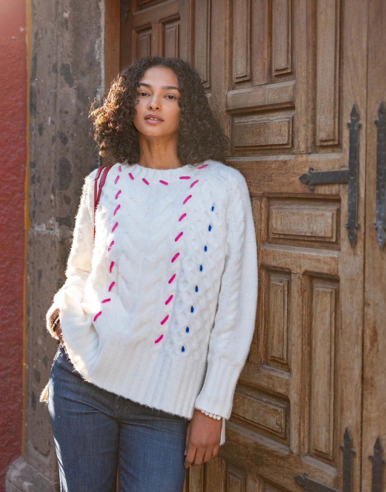 Knit with love and secretly festive - the Ribbons and Romance Sweater is non-negotiable this season. With cable knit design and ribbon detailing woven on body, you'll feel simply romantic this holiday. Best of all, it comes in one size fits most with small slit sides, making it a no-fuss addition to your wardrobe. Whether you're snuggling up by the fire or celebrating, this sweater is sure to keep you chic.