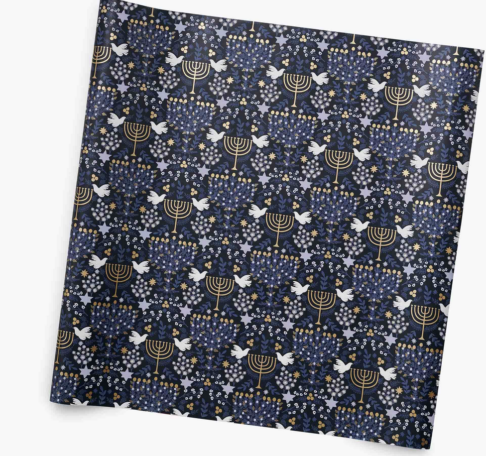 Add a touch of elegance to your Hanukkah gifts and crafts with Rifle Paper Co.'s Laurel Menorah Continuous Roll. This high-quality wrapping paper features beautiful illustrations, accents of gold foil, and gridlines on the back for easy cutting and measuring. With eight feet of paper, you'll have plenty to wrap all your holiday presents.