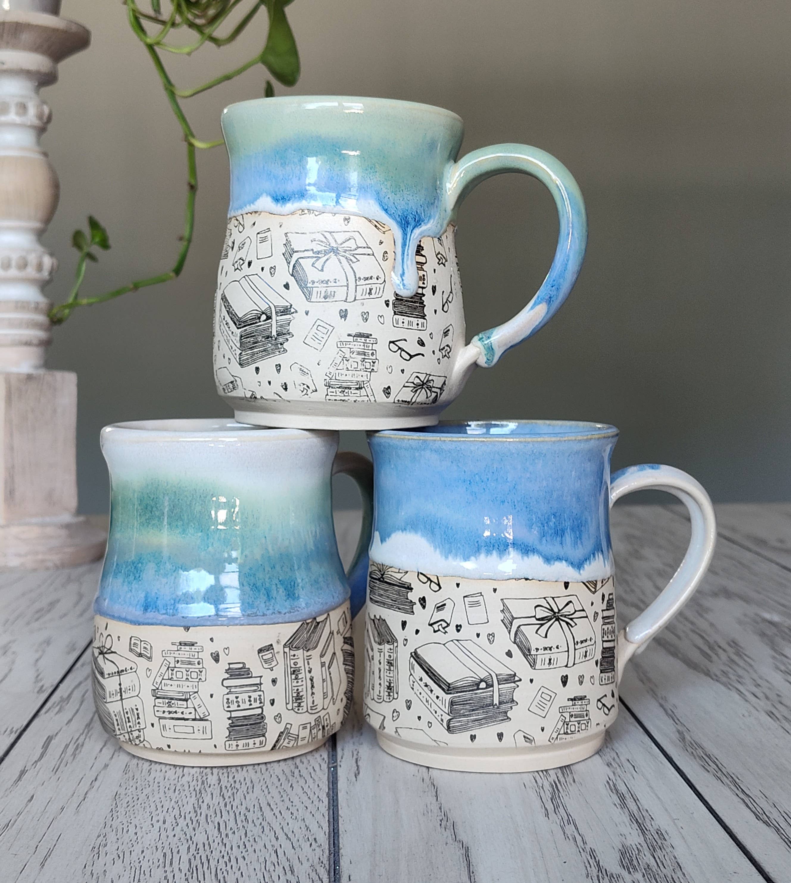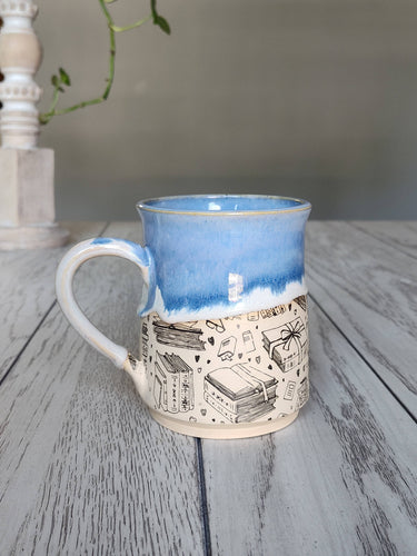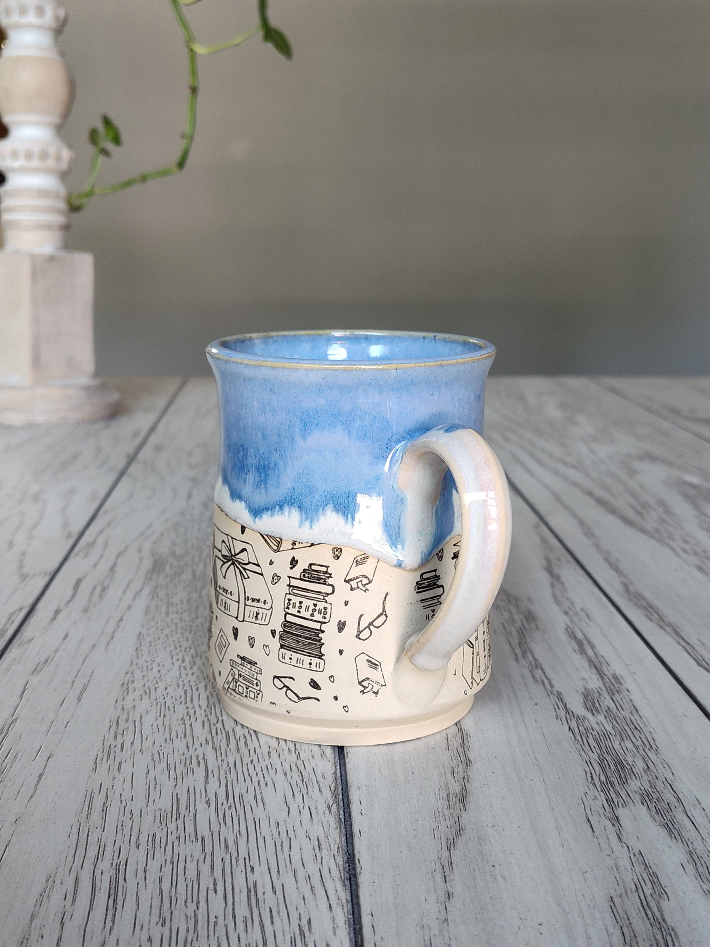 Rise and Design Art Studio - Book Coffee Mug Blue/Cream – Handmade Ceramics (12–16 oz)