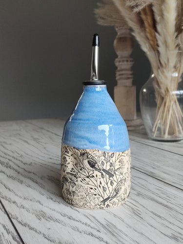 Rise and Design Art Studio - Floral Birds Ceramic Oil Dispenser- Blue & Cream