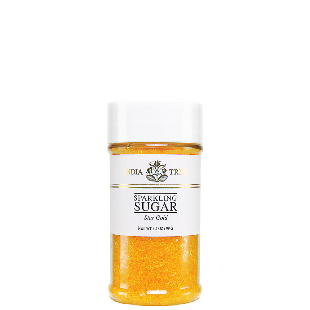 India Tree Star Gold Sparkling Sugar is a sunny yellow sparkling sugar sprinkle. Decorate cookies and cupcakes with this large-grained sugar crystal for an extra burst of color and crunch.