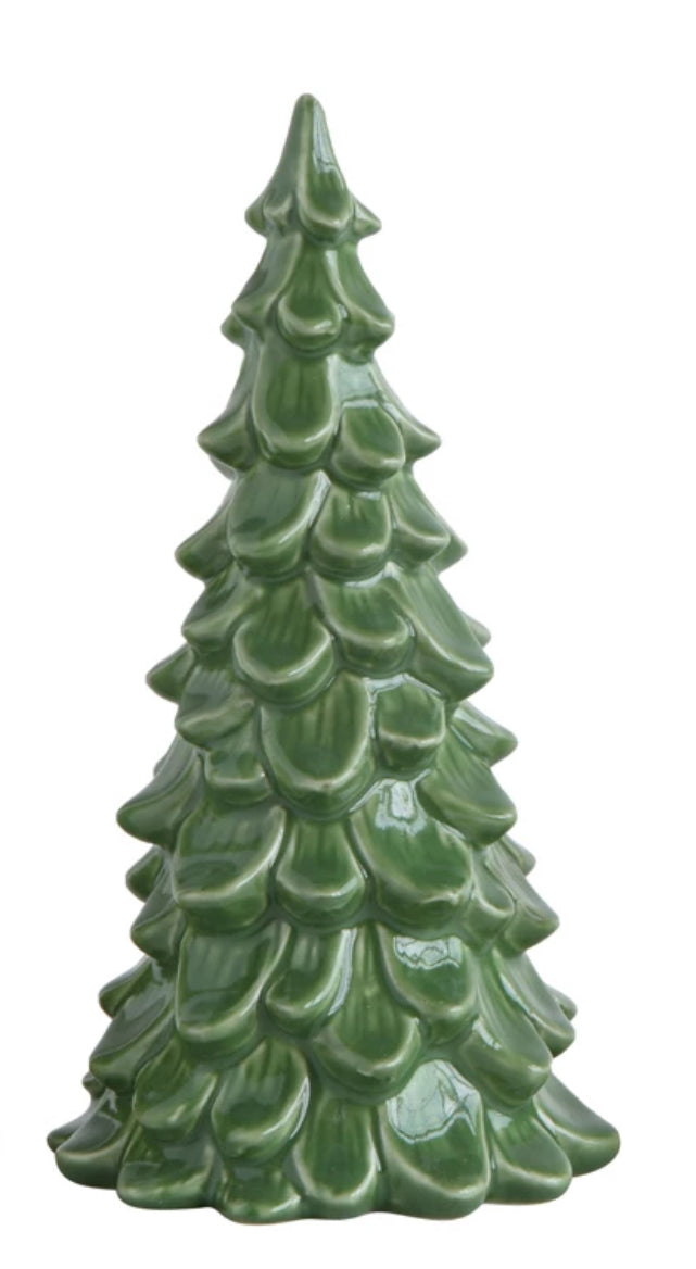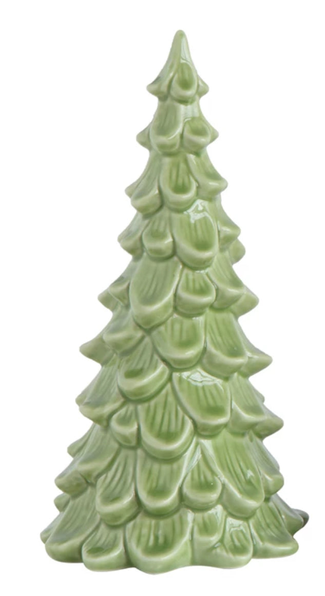 Add some holiday charm to your living space with these festive stoneware trees.