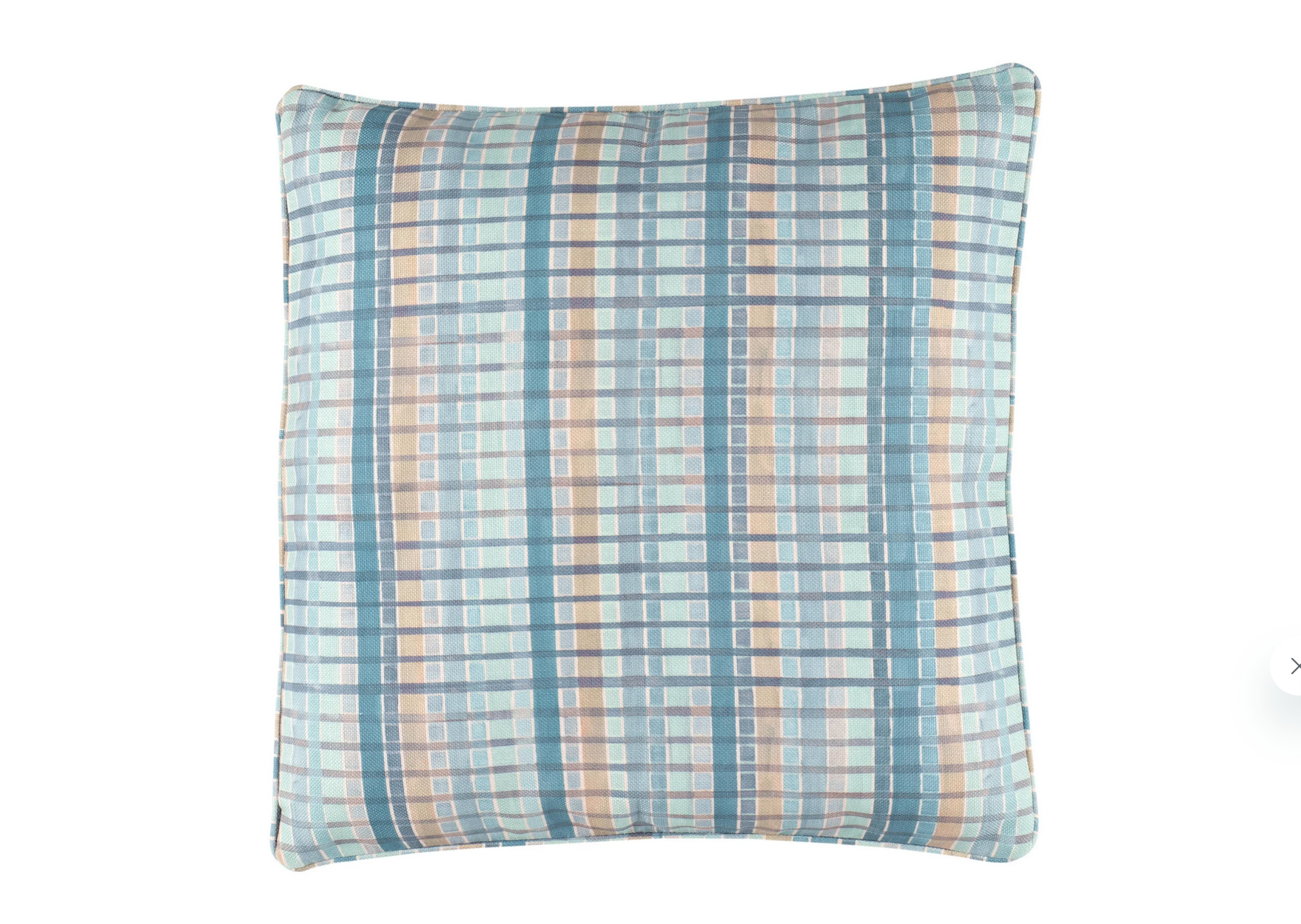 The Coral Cosmo is an all over gingham pattern with watercolor-inspired squares featuring corals, pinks, ocher, and blue, this pillow is made from high performance Greylock fabric with striated color variation and a distressed effect. A perfect blend of technology and style, it replicates the faded, vintage patina of natural indigo-dyed handspun flax while being resistant to weather, stains, mildew, and fading. Whether used indoors or outdoors, this stunning pillow will elevate any space.