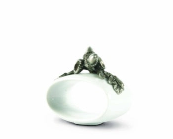 Start or finish an elegantly designed natural table with Vagabond House's Acorn and Oak Leaf stoneware and Pewter Napkin Rings. As homage to the majestic forests of our beautiful planet, a delicately detailed pewter figurative of simple acorns wreathed in oak leaves tops our elegant white oval stoneware napkin rings.