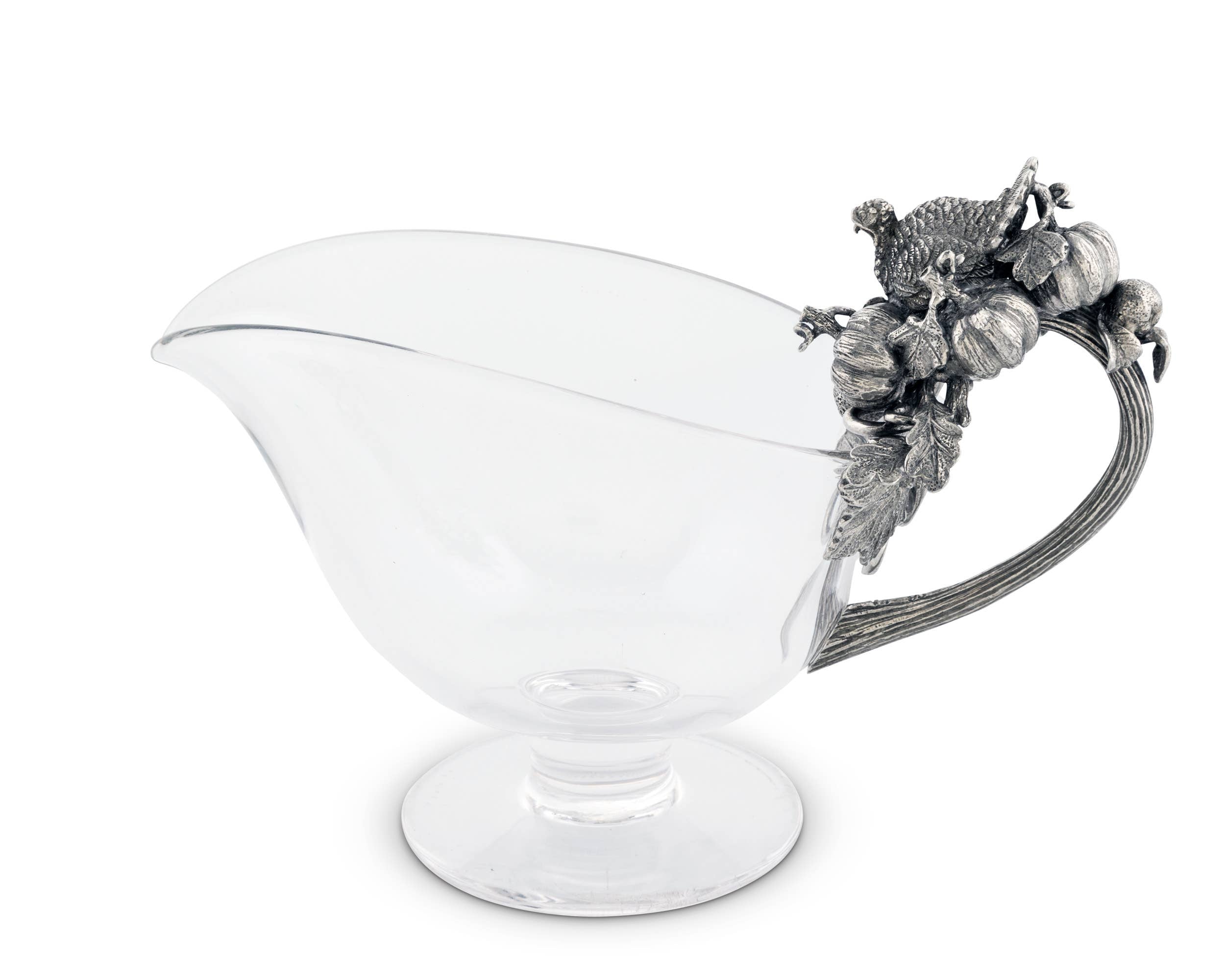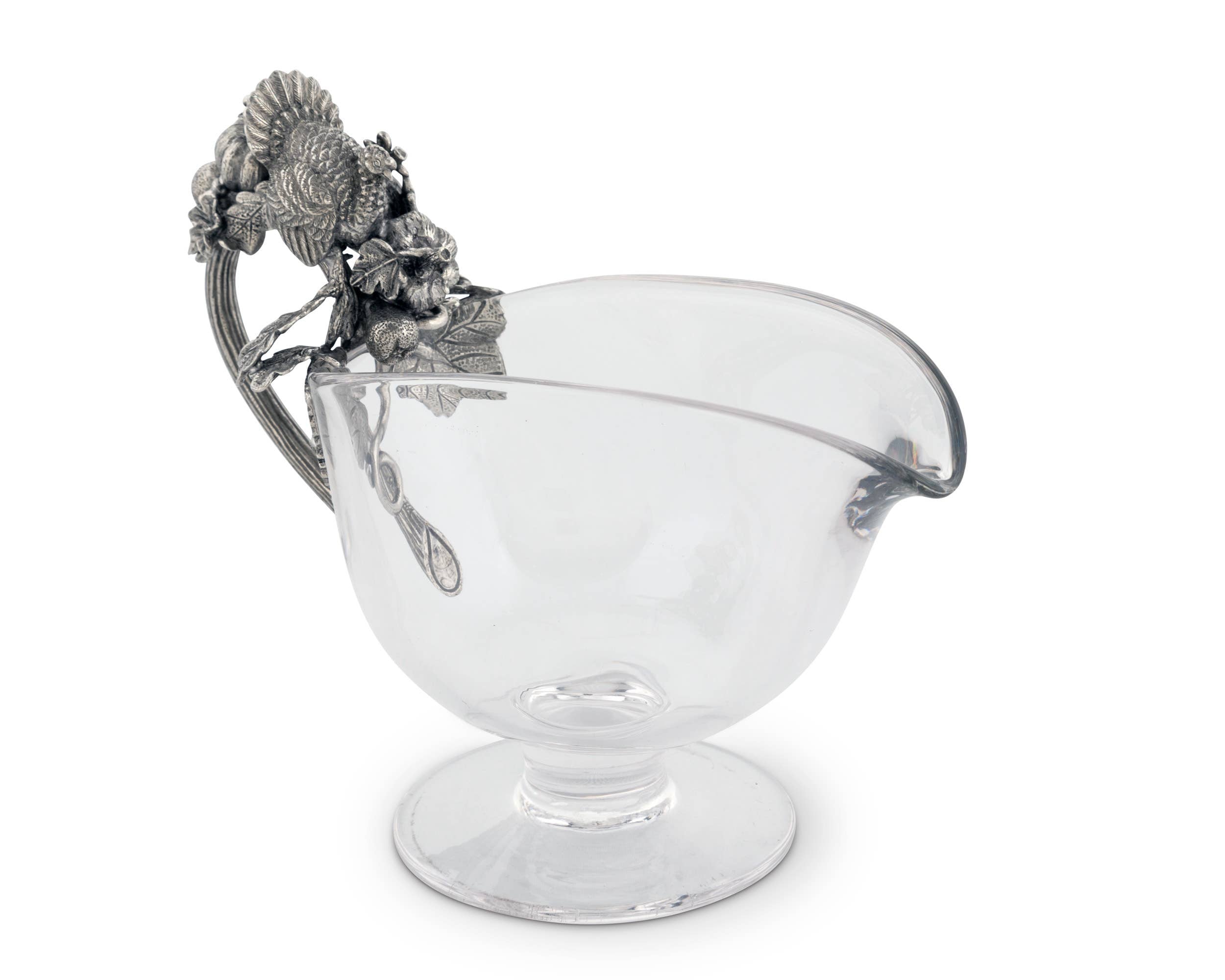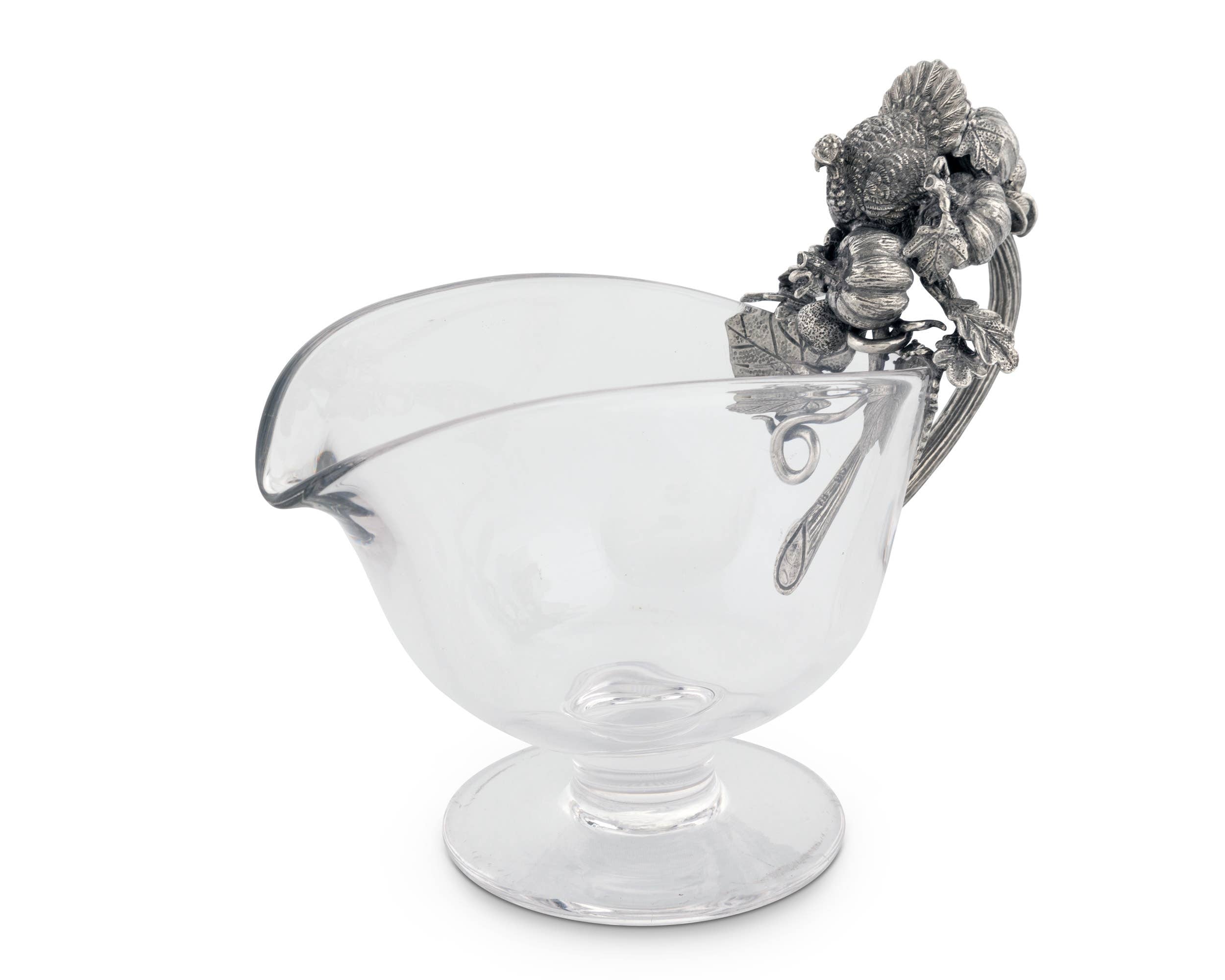 Hand Blown Glass Gravy Boat with Pewter Harvest Turkey