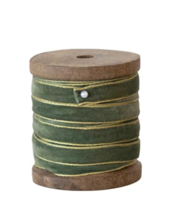 Velvet Ribbon with Metallic Edges on Wood Spool | Autum