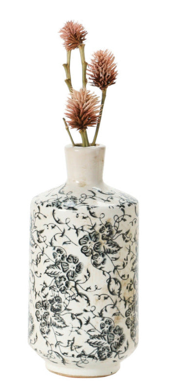 3-3/4" Round x 7-1/2"H Terra-cotta Vase w/ Transferware Pattern